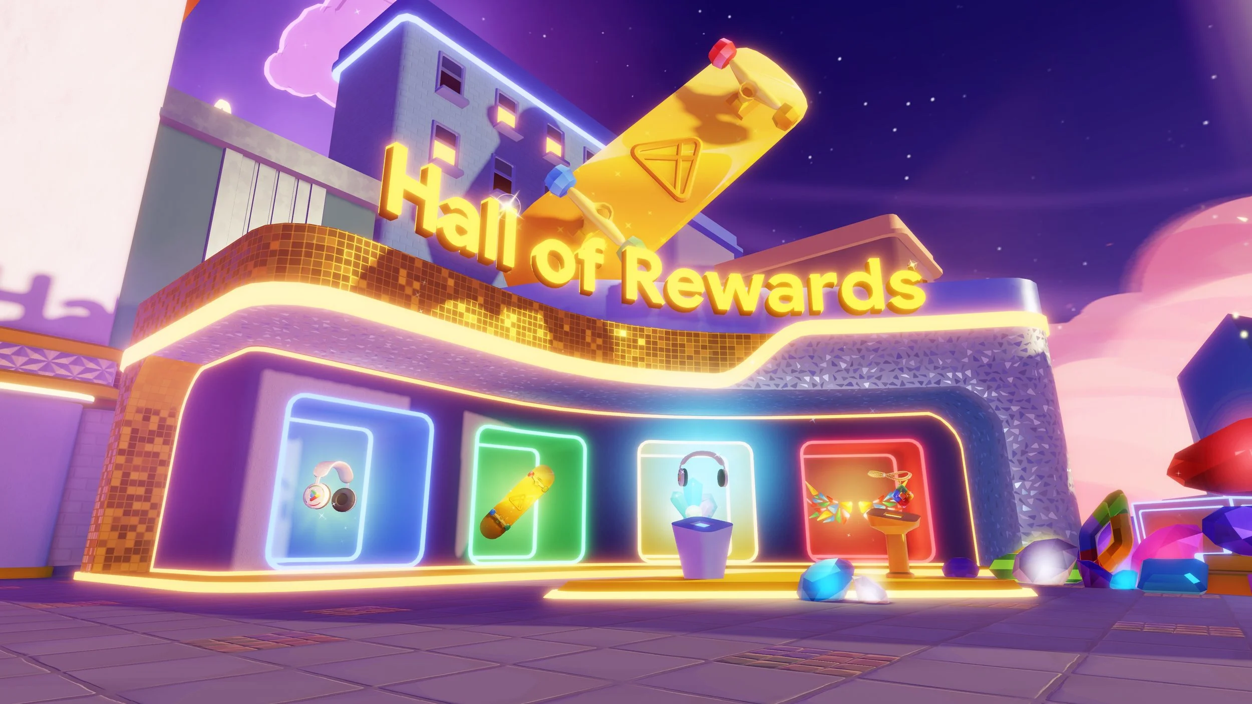 Week over week, players could collect tokens to rank up and get blinged-out digital clothing (UGC) like headphones, a skateboard and wings.